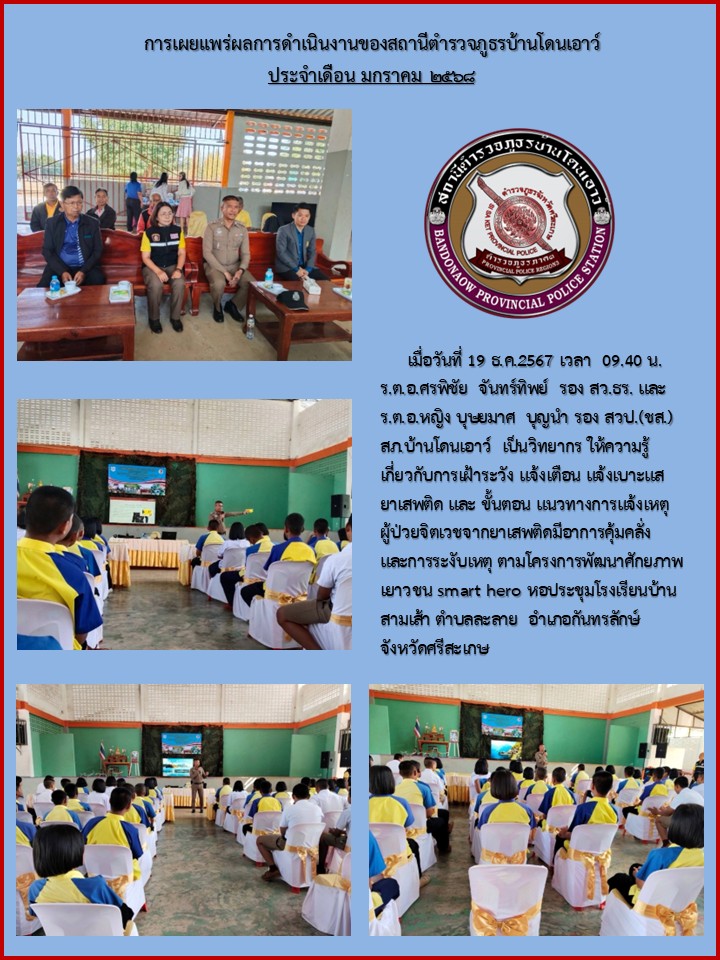 การประชาสัมพันธ์ข้อมูลผลการดำเนินงานของสถานีตำรวจประจำเดือน ม.ค.68