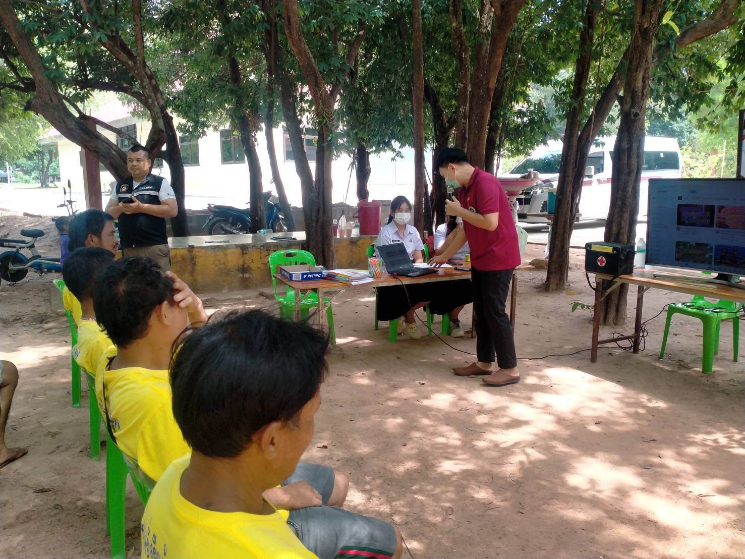 พ.ต.อ.วิเชียร เหมือนสุวรรณ์ ผกก.สภ.บ้านโดนเอาว์ พ้อมด้วย ร.ต.อ.จำรัส ยอดจิต สวป.ฯ,ร.ต.อ.ศรพิชัย จันทร์ทิพย์ รอง สว.ธร.ฯ,ร.ต.ต.สรวิชญ์ โคตรพันธ์ รอง สว.(ป.)ฯ,ด.ต.ชื่น ศิลาไลย ผบ.หมู่ ป.ฯ,ด.ต.เบญจพล ชาญชัย ผบ.หมู่ ป.ฯ,ด.ต.อาจหาญ สุขเต็มดี ผบ.หมู่ ป.ฯ เจ้าหน้าที่ชุดปฏิบัติการชุมชนยั่งยืนฯผู้ใหญ่บ้านหนองอุดม, ผู้นำชุมชน,ประธานคุ้มกรรมการคุ้ม, และจนท.รพ.สต.ฯร่วมอบรมให้ความรู้ผู้บำบัด ที่สมัครใจเข้าร่วมโครงการเพื่อให้เห็นโทษของยาเสพติดทำการตรวจปัสสาวะ ผู้บำบัดนำผู้เข้ารับการบำบัดทำกิจกรรมบำบัด CBTx จิตอาสาพัฒนาปรับปรุงภูมิทัศน์ทำความสะอาดบริเวณวัดหนองอุดมวนารามฯ กิจกรรมบำบัดด้วยดนตรี